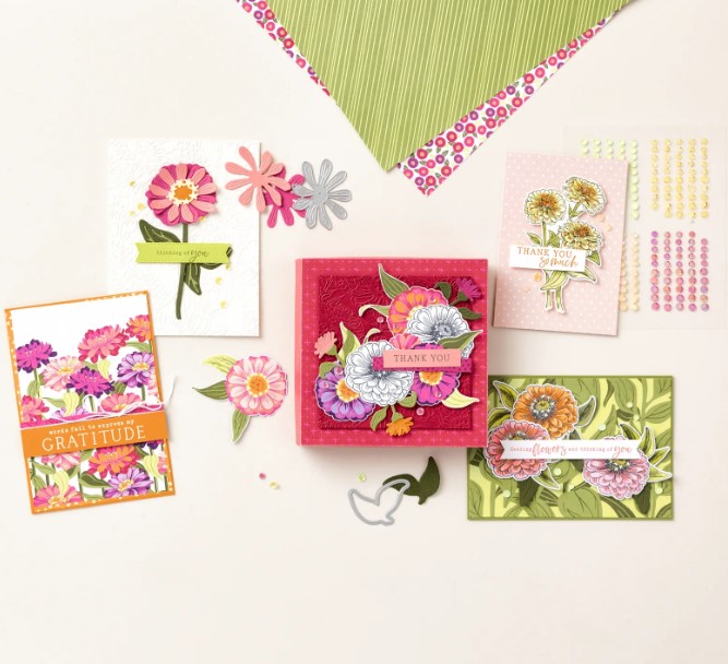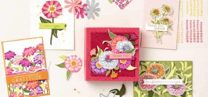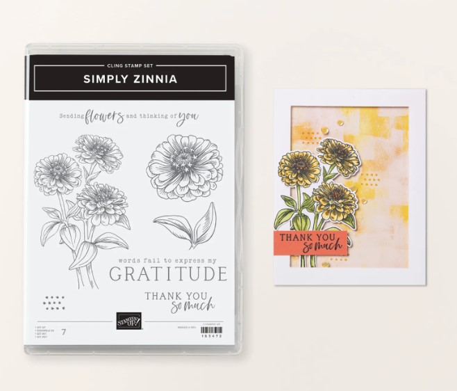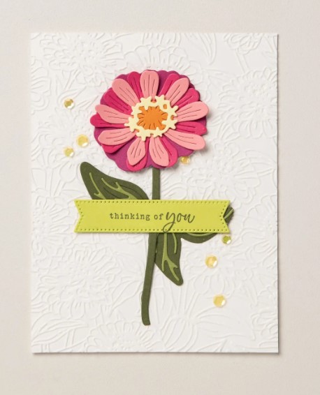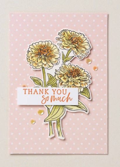 Adding a little strip of patterned paper adds an extra element to a very simple card. The paper is from the Flowering Zinnias Paper pack.