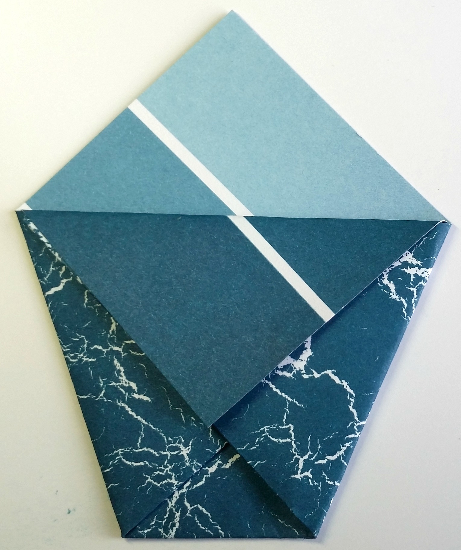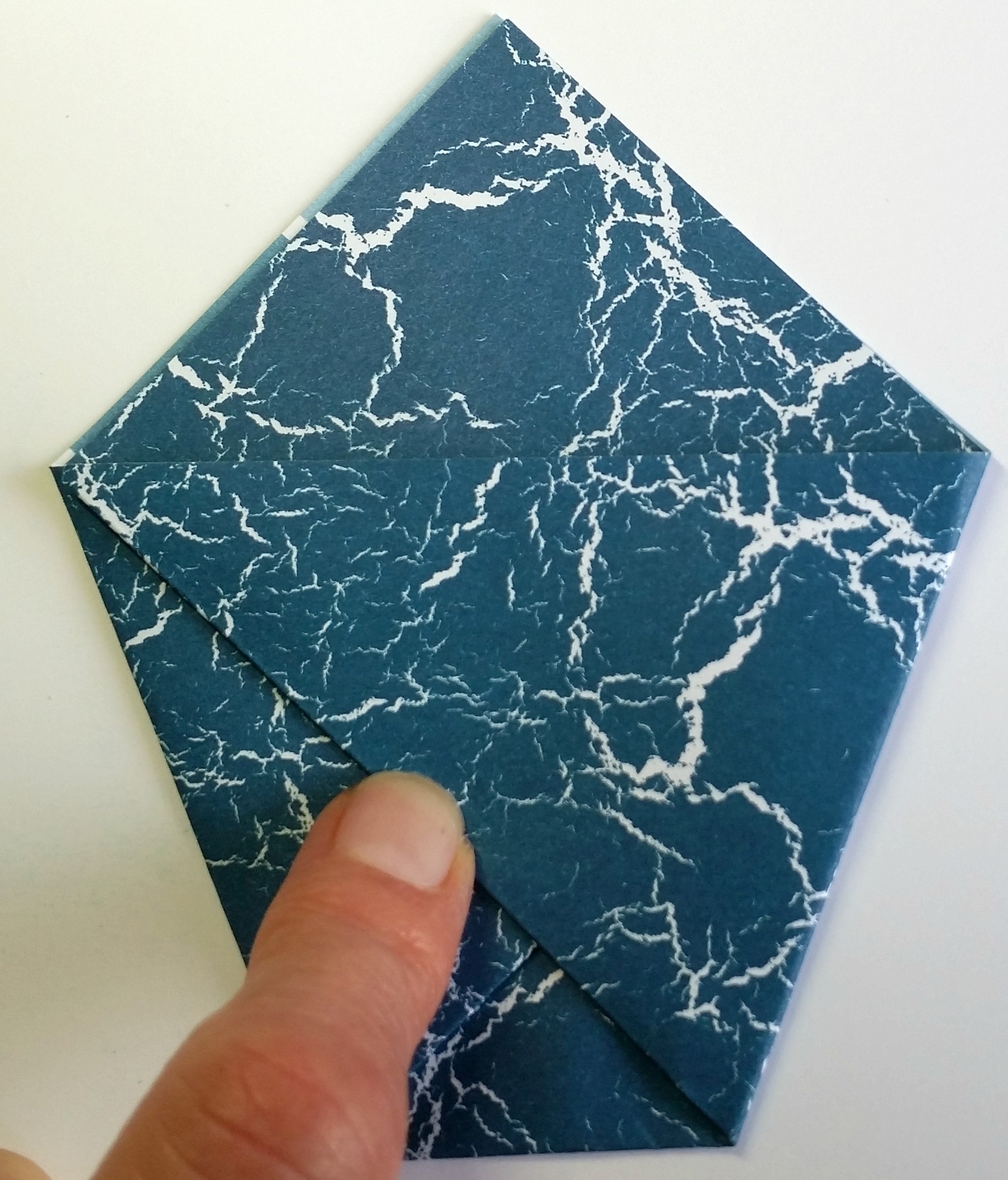 4. Take the top point and fold just one layer down over the 2 folds. Place adhesive behind it to keep it closed.