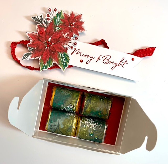 This little mini box is so cute. You could fit a lipstick or lip balm in it or a small chocolate. The finished size measures 7cm Wide (2 3/4″), 3.2cm Deep (1 1/4″) and 2.2cm Height (7/8″).