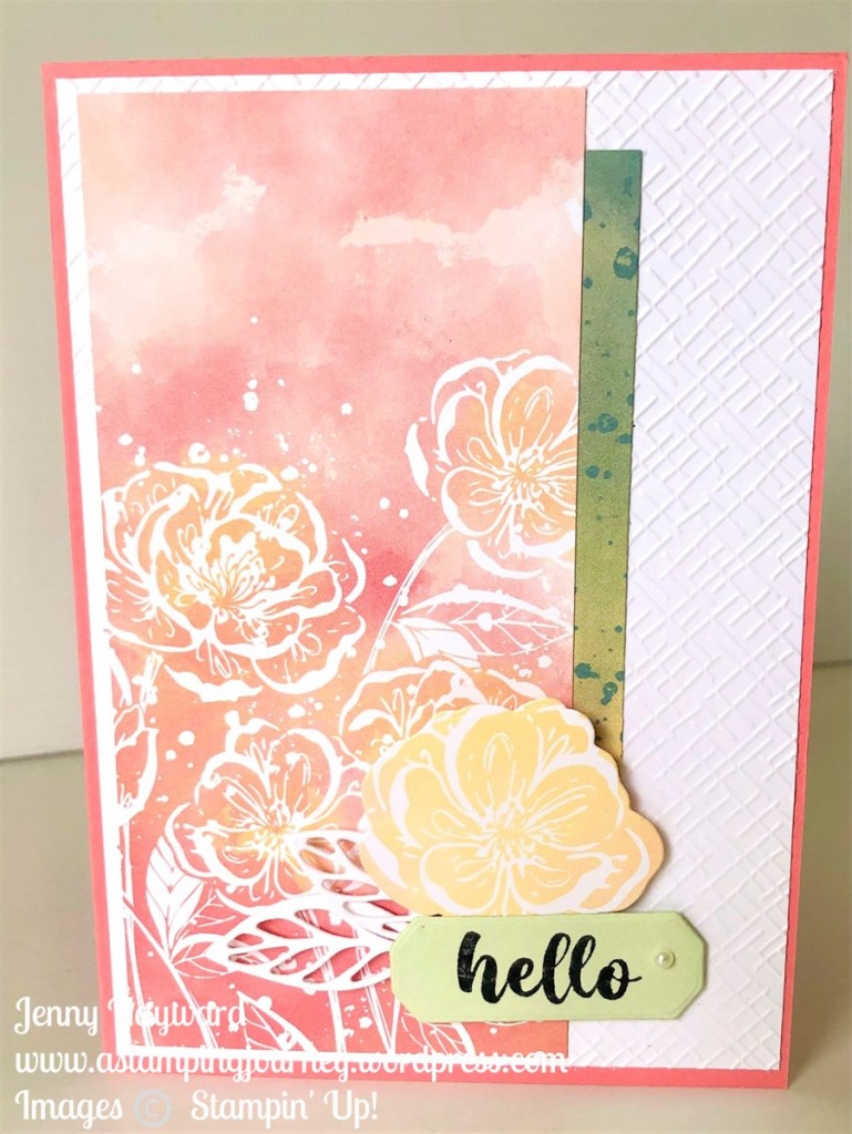 You can use your Patterned paper. This one uses the Hello Irresistible Paper. It is a really cool effect. The flower from Everlasting Beauty is stamped in black. It comes together quickly.