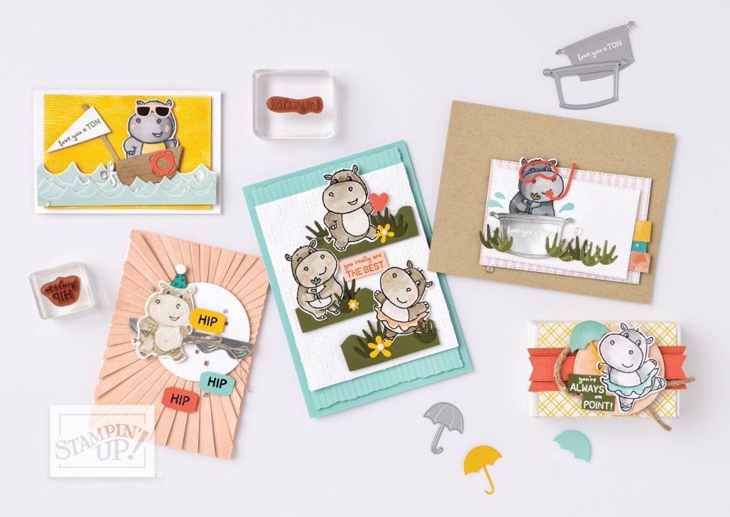 The Hippest Hippos Stamp set is one you can pick with your qualifying orders over $90 AUD for Sale-A-Bration. The Hippo Dies you can select with another $90.