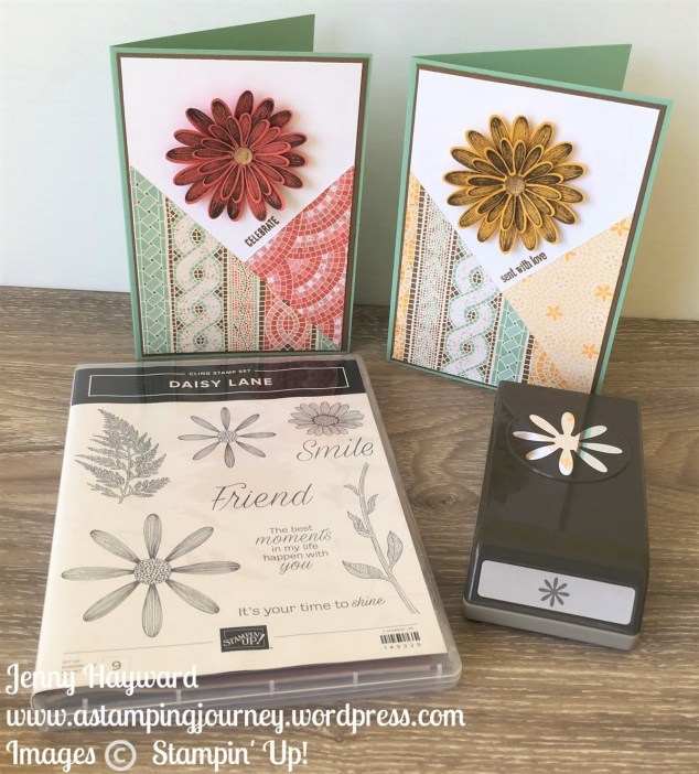 Today I have 2 cards using the Daisy Lane stamp set and the Medium Daisy Punch. I have also used the larger Daisy Punch.