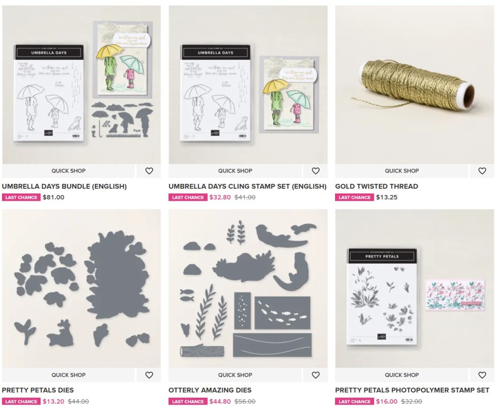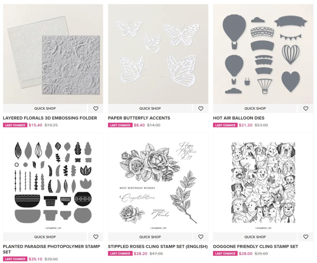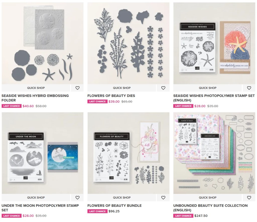 So check out what crafty bargains you might pick up. There are a lot from Paper, Stamps, Dies and Embossing Folders, PLUS the retiring 2023-2025 In Colors.