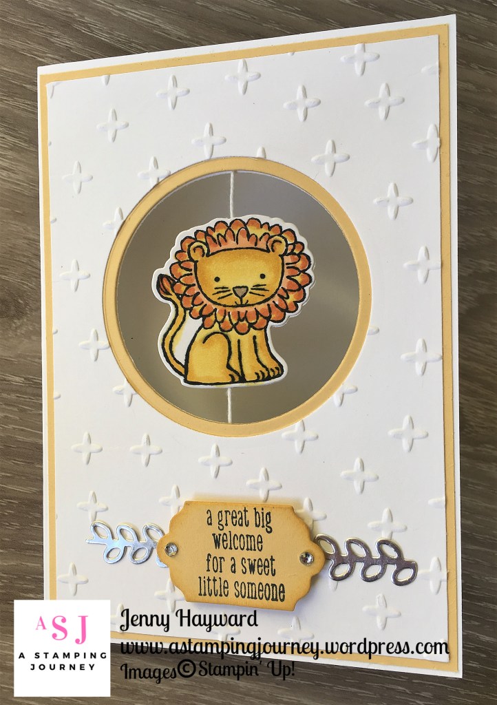 This is the front of the card.  I coloured the cute little lion with the Stampin’ Blends.
