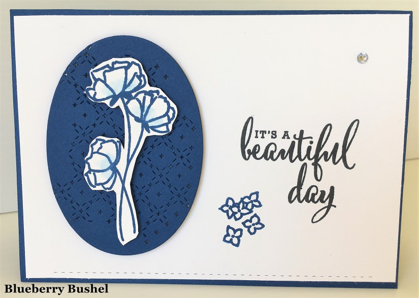 I am liking this shade of blue. It’s not such a dark shade like the Night of Navy but not so “bright” which is a good addition to the blues. I think it will work well for Masculine cards.