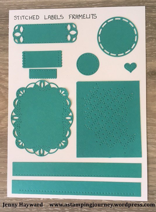 It’s hard to see them all when there are so many. I have each one below. I used the Love What You Do stamp set and the new Stitched Labels Framelits. Love! Love! Love! these. If you love the Stitched Shapes Framelits you will love these.