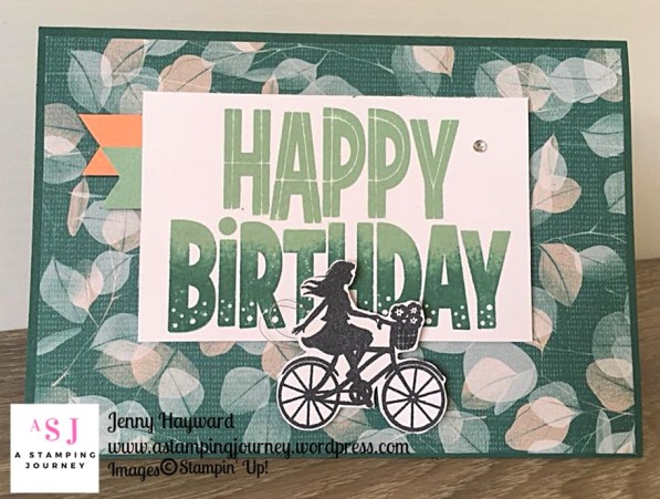 This one is made from the Nature’s Poem DSP. I added the strip across the top edge. Instead of adding handles I added a ‘V’ Shape strip and added some gems to the front. Is it “manly” enough? Maybe I should make it more of a tie shape.