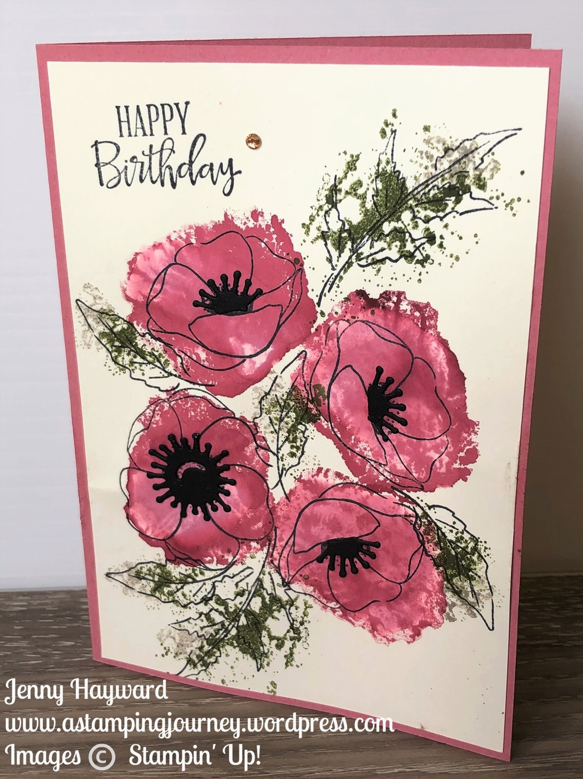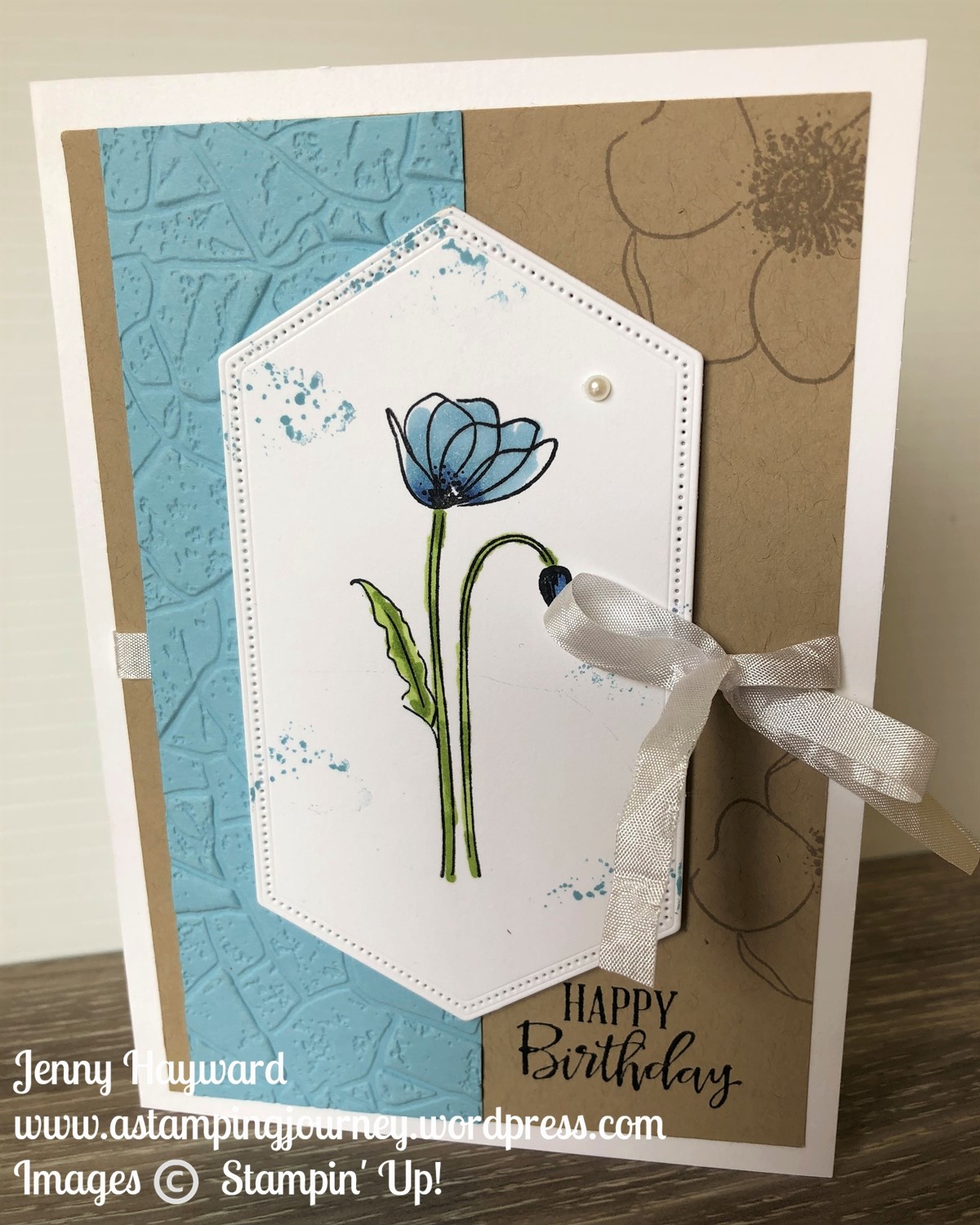 With my class this week with the Adventurous Journey Stamp Set I have been having lots of fun creating with it. I thought this print from the Rings of Love paper looked like a watery background. I really liked the effect of it. And no mess with creating a watercolour piece!