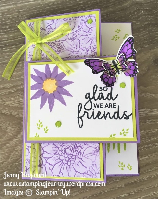 The butterfly is from Butterfly Gala coloured with the Stampin’ Blends. I just happened to have this finished butterfly on my desk left over from a previous project that I didn’t end up using. It worked well I think.