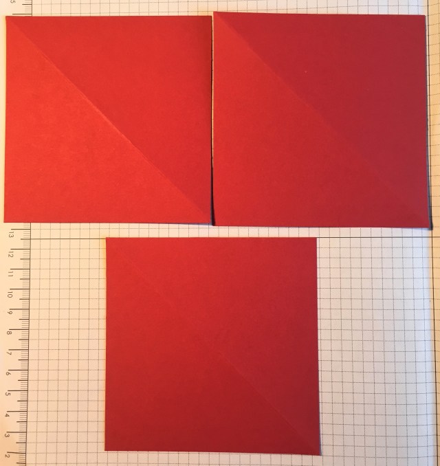 Cut 3 squares of card to 10.5 cm (Just over 4”).