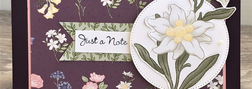The sentiment is from the Painted Poppies Stamp set stamped on a diecut circle from the Beautiful Shapes Dies.