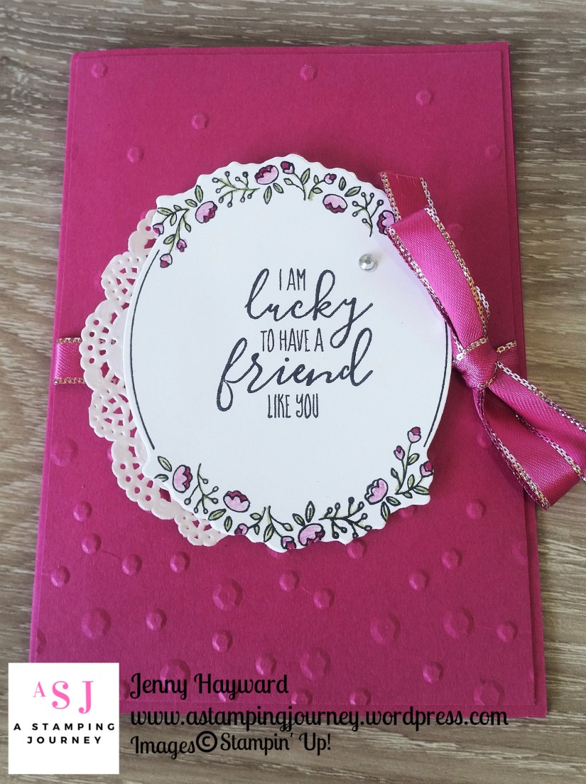 It’s been a busy few months with Sale-A-Bration.  First of all,  Thank you to all my customers for your support and patronage AND to the wonderful new people who have joined my team.  I had 4 new people join the JEN’s INK team over Sale-A-Bration. They know a bargain when they see one.  Welcome to them all.  I love my team whether they are hobby demos loving the discount or striving to build up their business.  BUT, Thank you to you all for visiting my blog.  I would love to talk to you in person and love to say Hello.  I love talking to people about cardmaking and sharing ideas.  It’s always so exciting.  We can all learn from each other.  Thanks for stopping by in your busy day. Don’t be scared to leave a comment now and then. 🙂