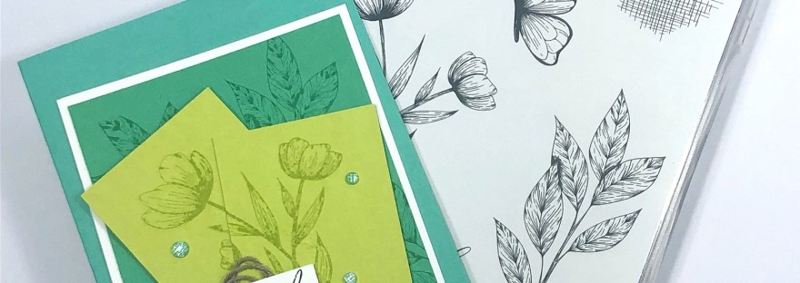 For the stamped flowers position the two Granny Apple Green pieces how you would like them and then stamp the flower on both pieces at the same time while they are together. It is so much easier than trying to line it up and getting the angles of the card right.