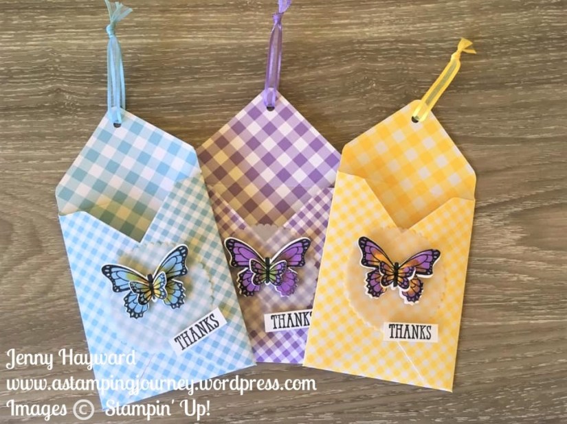 Grab the Goodie box and materials to create your projects at home. Substitute the stamps used with what you have at home. (need a seaside set like By The Bay and a flower set)
