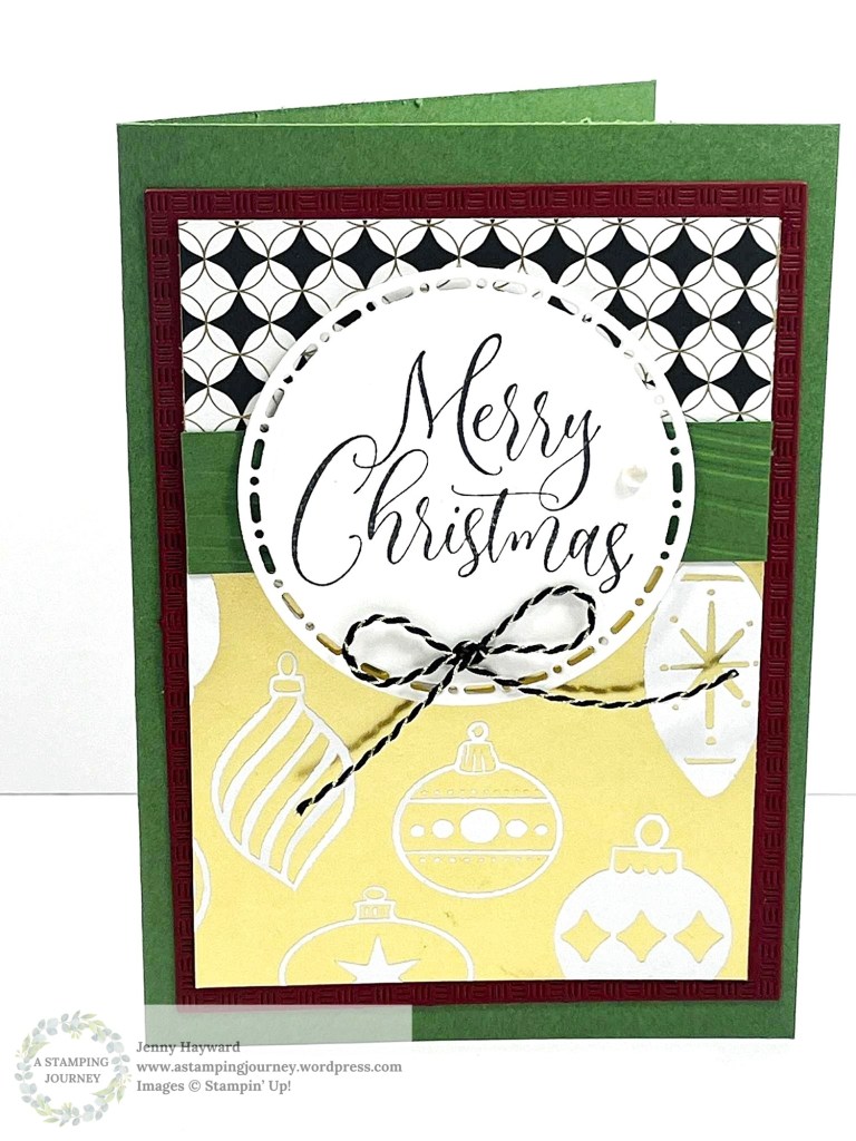 To finish the card I stamped the sentiment on white card and diecut with one of the larger Arch dies in the Everyday Arches Set. Before I diecut the arch I added a strip of the Modern Christmas Specialty Paper near the bottom.