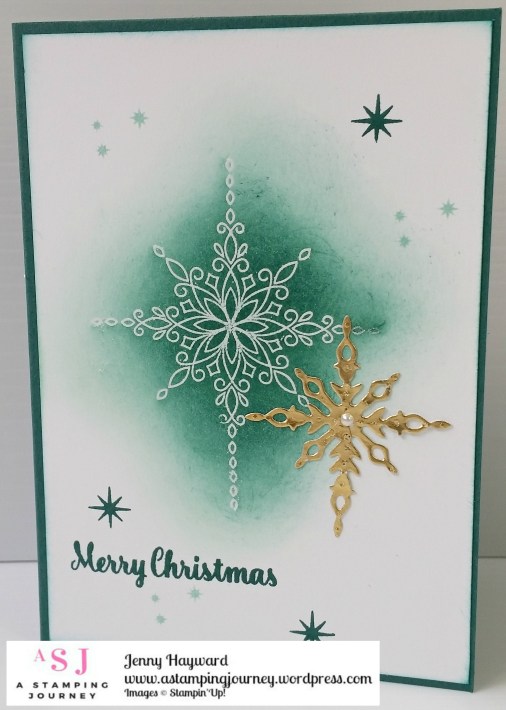 Here is the card. I have used the Star of Light Stamp set and the Starlight Thinlits. I have a video below for you to check it out yourself.