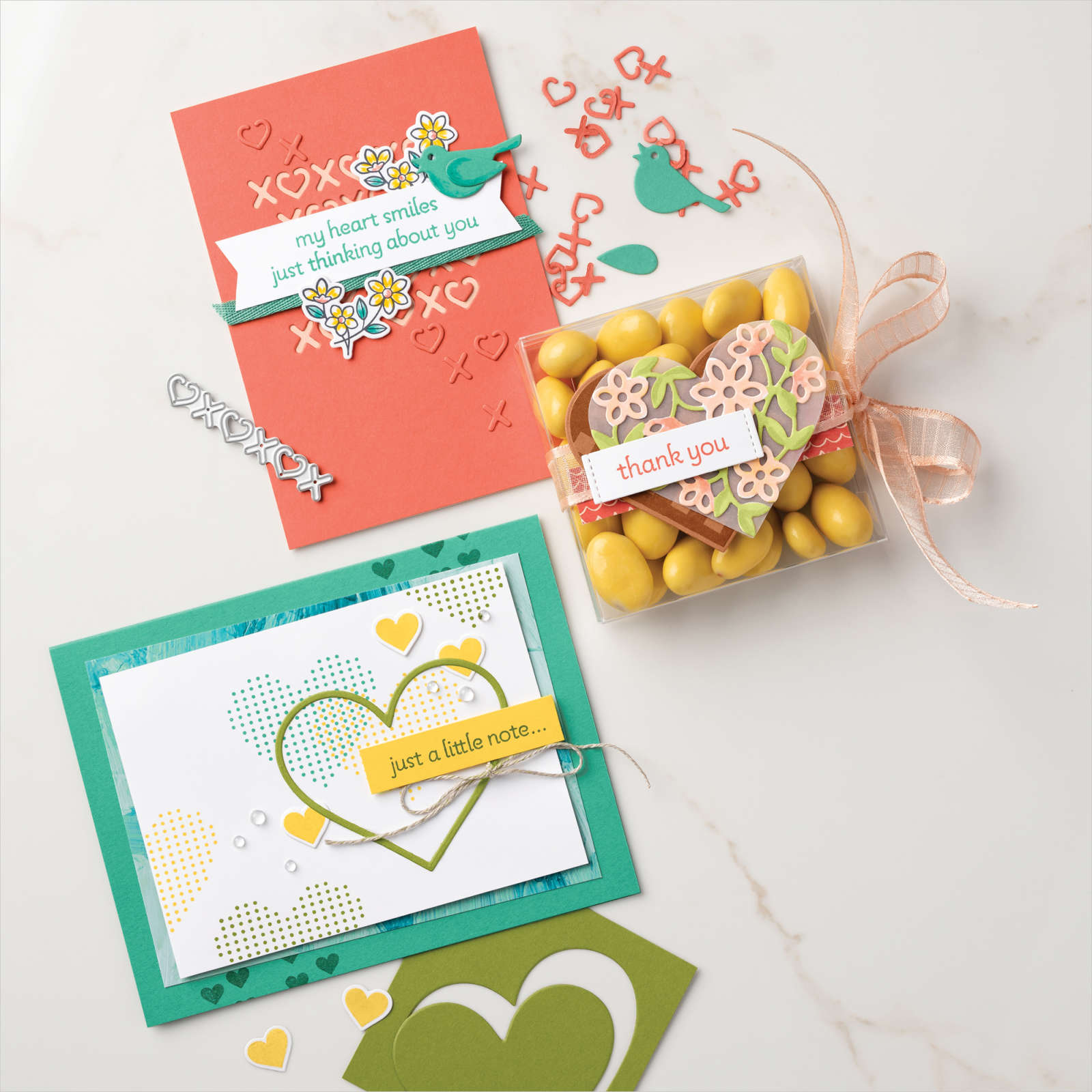 With the sentiment I added a sticky note over the full sentiment and just showed the Thinking of You on a small strip of Crushed Curry. Then I snipped the sentiment in half to separate it for the card.