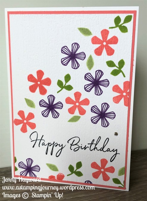 Then finished with stamping flowers in Gorgeous Grape and the leaves in Granny Apple Green and Pear Pizzazz.