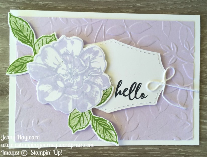 The rose in this set is created with 3 stamps. You can use one, two or all three stamps together. I used all 3 in this one. The rose was stamped on scrap white paper. Firstly stamp the outline rose image in Blackberry Bliss, the sparser filler image was stamped in Blackberry Bliss and the more detailed centre stamp was stamped in Rich Razzleberry. I love how you get the depth to the flower with the multiple images.