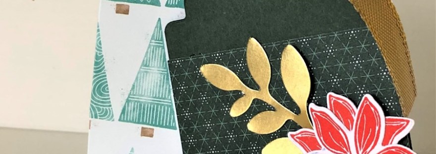 A tag was diecut from White card but also from the Graceful Greenery Vellum. I used the Greetings of the Season stamps and dies. Add a stamped leaf from the Golden Greenery stamps and dies and then also diecut leaves. One from Shaded Spruce and the other from Soft Sea Foam card.