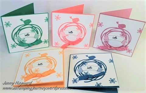 These little mini cards I made back in June 2016 to show the colours but I don’t know if I shared them on my blog as I can’t find the post now. Here you are though. They were using my favourite set at the time Swirly Birds. (Note to self: I really must use that set again soon).