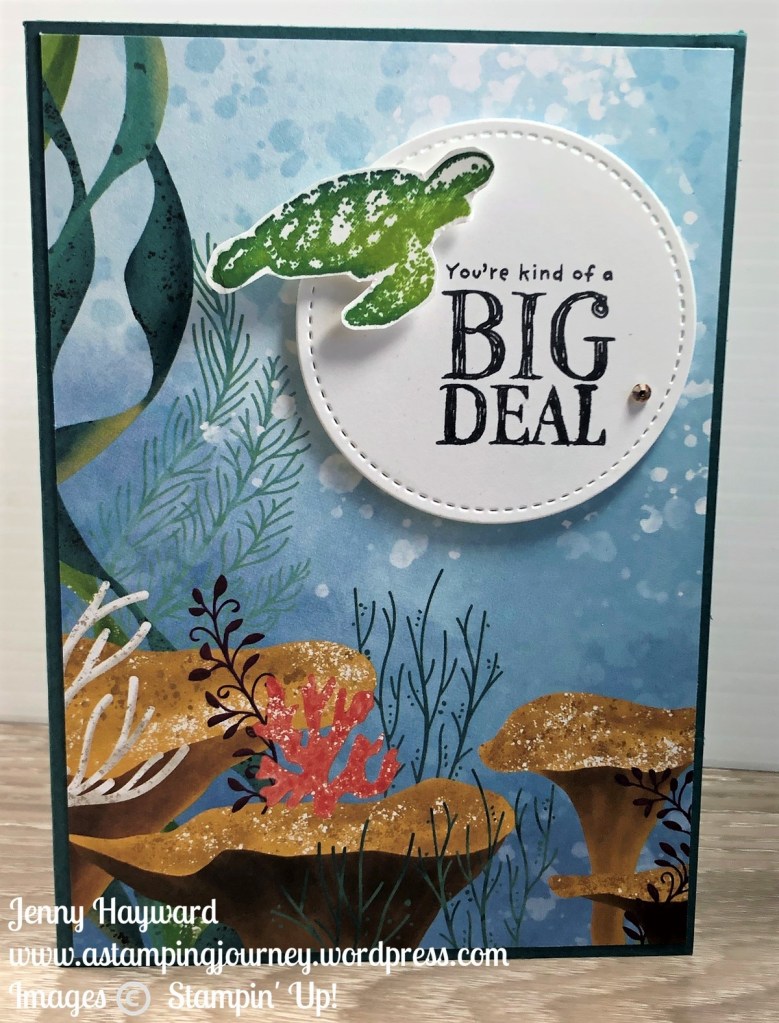 The top scallop water edge is from the Scalloped Contours Dies. The clouds are from the Wave Dies. The sentiment strip is from the Sending Dies. The rest you can find in the Hippos Dies. It’s great how all these dies come together to create a fun scene.
